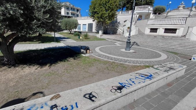 GROTTAMINARDA— La villa comunale, gli archi storici e persino le panchine: niente è stato risparmiato dall’azione di ignoti che, armati di bombolette spray, hanno lasciato dietro di sé scritte volgari e disegni osceni. Anche i muri dei parcheggi di fronte al municipio sono stati sfregiati, a pochi metri dalle finestre che si affacciano sulla sede delle istituzioni cittadine.