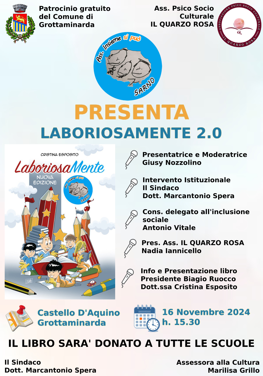 Si terrà sabato 16 novembre alle ore 15:30 presso il Castello d’Aquino di Grottaminarda la presentazione del libro dedicato alla didattica inclusiva “LaboriosaMente 2.0”.