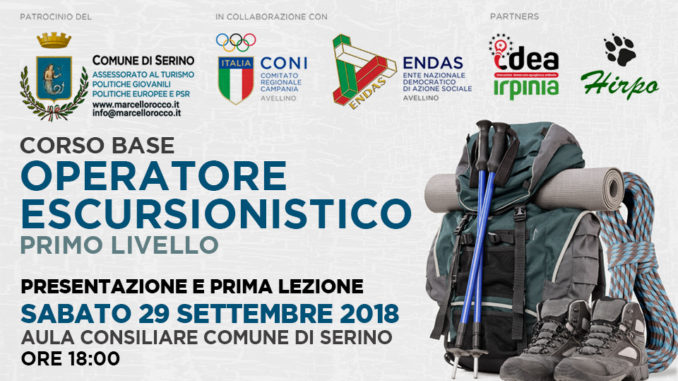 Dopo il successo della prima edizione, sabato 29 Settembre, alle ore 18.00, avrà luogo, presso l’Aula Consiliare del Comune di Serino, la presentazione e la prima lezione del corso base di operatore escursionistico di primo livello.