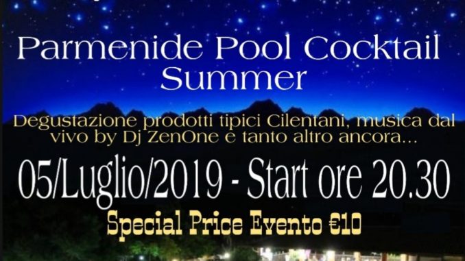 ino (SA), nel cuore del Parco del Vallo di Diano e degli Alburni e sede del Centro di formazione professionale dell’Arte del pizzaiolo napoletano e di esperti della Dieta Mediterranea, entrambi patrimonio immateriale UNESCO, si svolgerà “Parmenide Pool Cocktail Summer”, il primo evento di inizio estate 2019 per l’inaugurazione di “sBARià”, Lounge bar dall’innovativo concept dedicato all’arte della Mixology e del Food, che punta a divenire riferimento del settore food & beverage per chiunque ami scoprire un nuovo modo di bere, legato al territorio, ai prodotti cilentani di qualità, in un contesto suggestivo, a bordo piscina, con eccellente musica di sottofondo e la possibilità di abbinare in pairing tanto piccoli finger food, quanto light lunch o cenare nel delizioso ristorantino “Zenone” sulla piscina, scegliendo tra la pizza, certificata ”Pizza Verace Napoletana” del pizzaiolo Giovanni o i piatti tipici della tradizione a base di prodotti a KM0 dell’agriturismo curati dallo Chef del Parmenide, Antonio Barone.