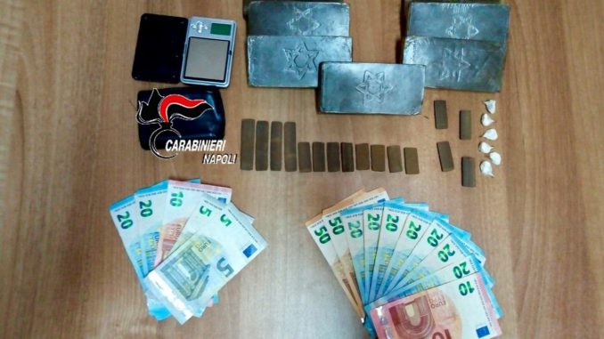 Vincenzo Borrelli, di Acerra, già noto alle ffoo, è stato scoperto dai Carabinieri dell’aliquota operativa della compagnia di Castello di Cisterna a nascondere sotto al letto 720 g. di hashish, 1,5 g. di cocaina divisi in dosi tenute in un bussolotto di quelli per le “sorprese”, 310 euro in contante e un bilancino elettronico. E’ stato arrestato e dovrà rispondere di detenzione di droga a fini di spaccio. dopo le formalità, è ai domiciliari.
