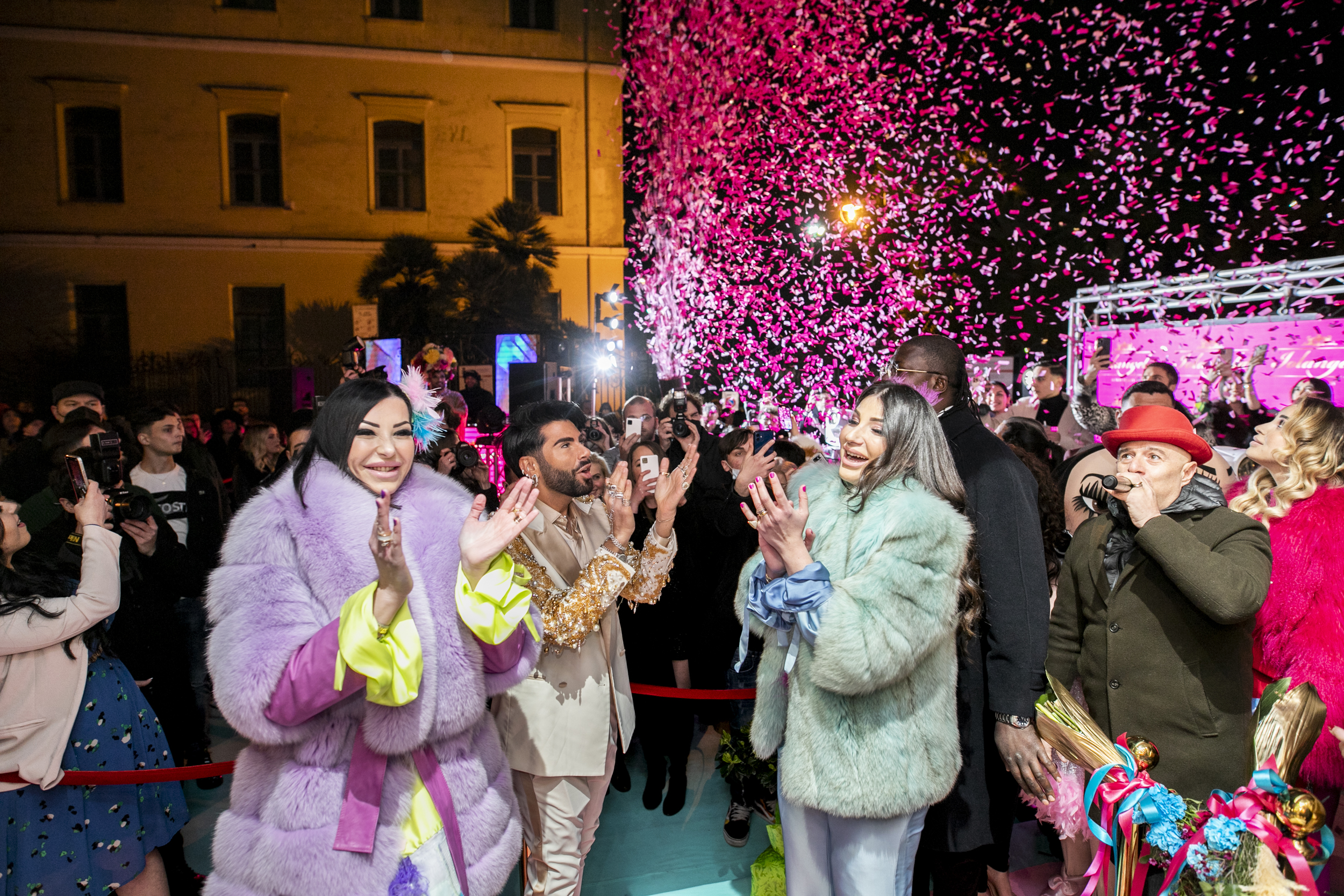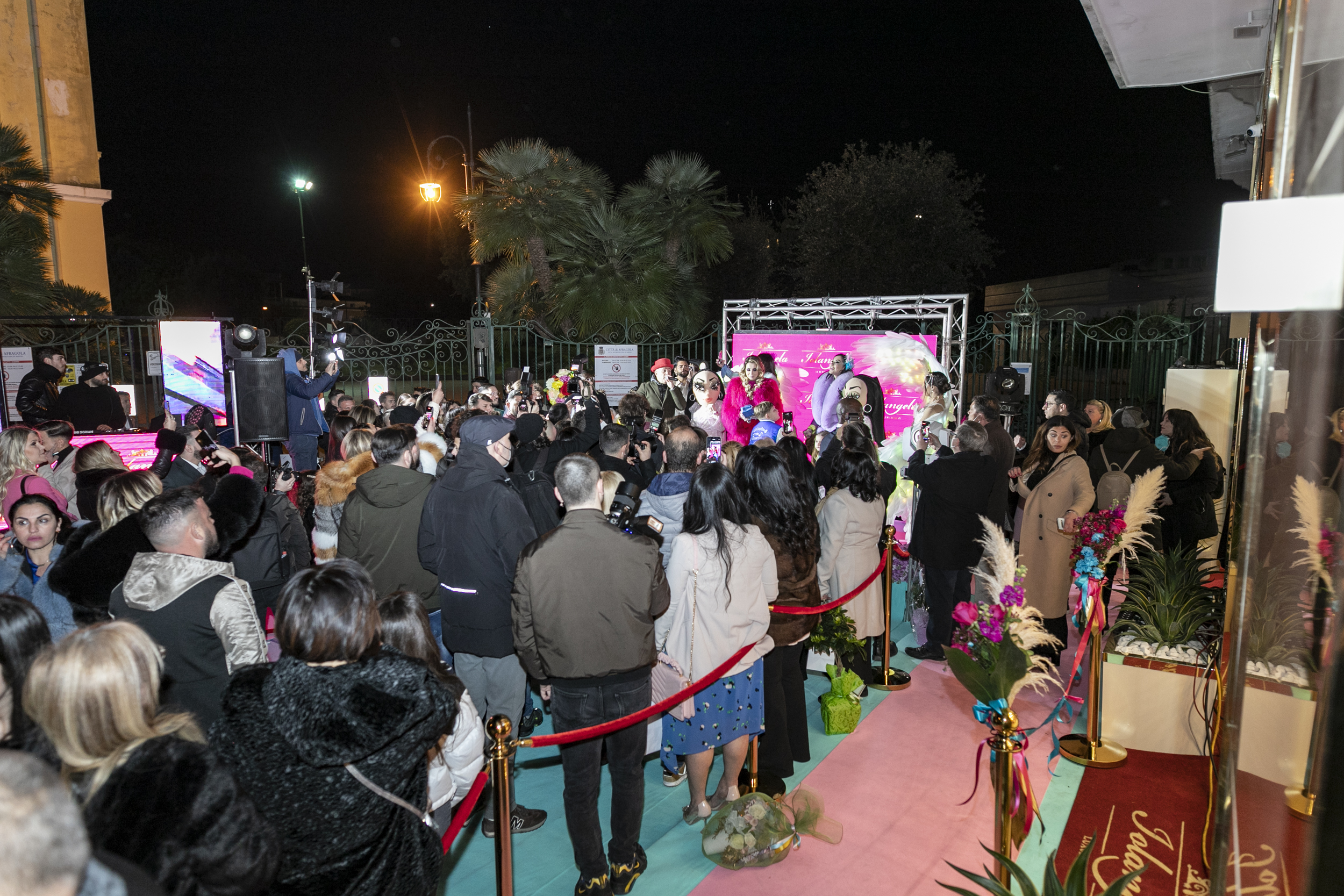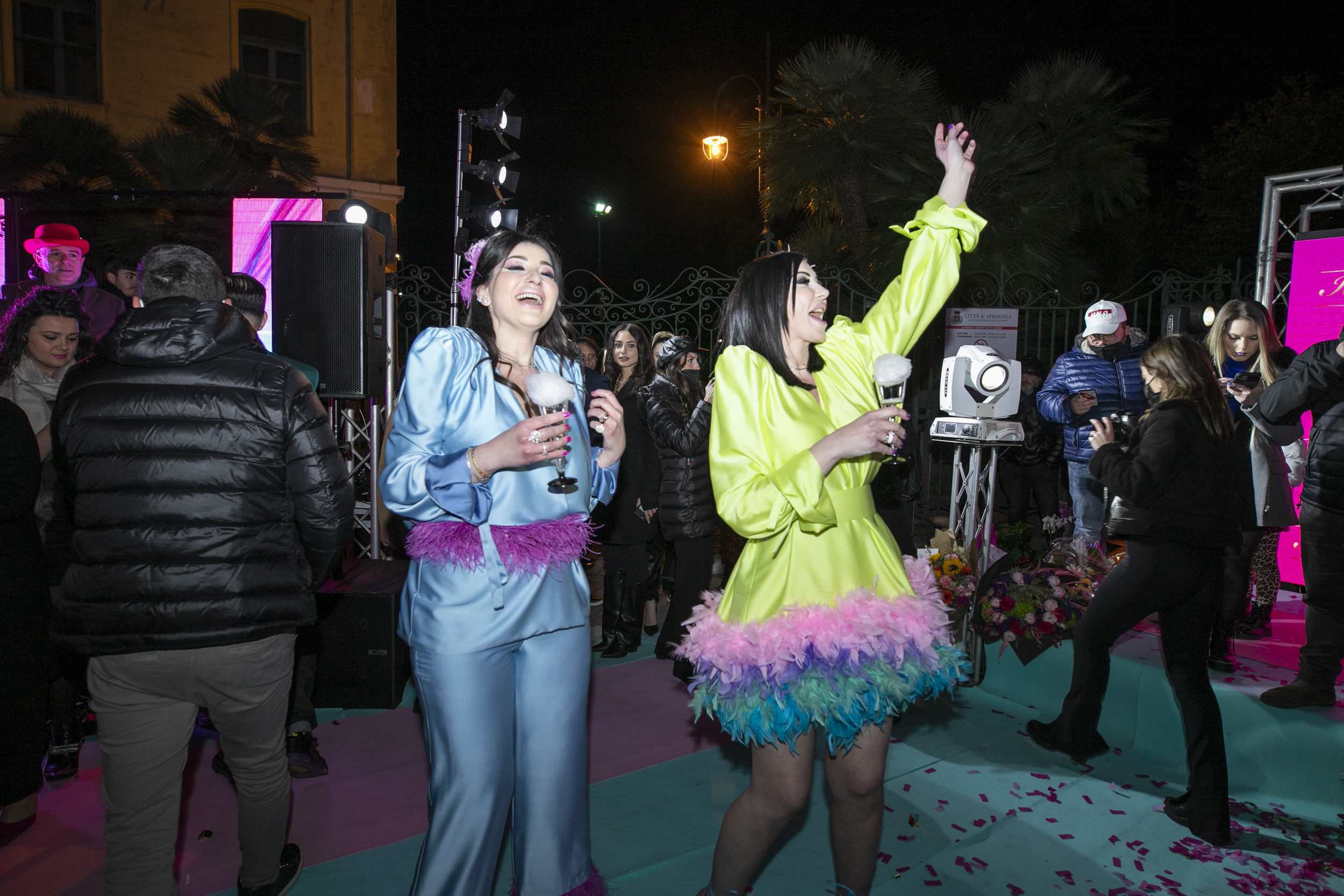 Al party hanno preso parte tanti amici e clienti delle “Iolangela”, ma anche numerosi curiosi, invitati a partecipare allo spettacolo all’insegna di giochi di luci, mangiafuoco, dj set, ballerine con maxi ali piumate e maschere gold, che si sono cimentate in sensuali coreografie.