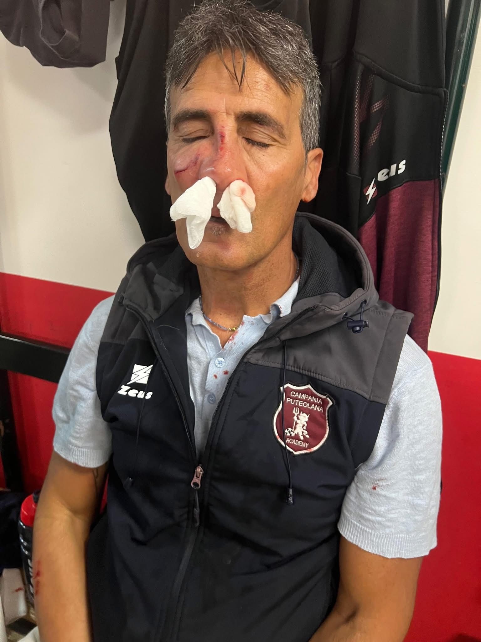 “È inaccettabile – ha concluso Esposito – andare in un campo di calcio e rischiare la vita. Chi ha compiuto questo gesto dovrà essere punito”.                                                                              Aggredito il presidente della Puteolana: frattura al setto nasale, sarà operato. “Una vergogna, doveva essere una giornata di festa” Aggredito il presidente della Puteolana: frattura al setto nasale, sarà operato. “Una vergogna, doveva essere una giornata di festa”