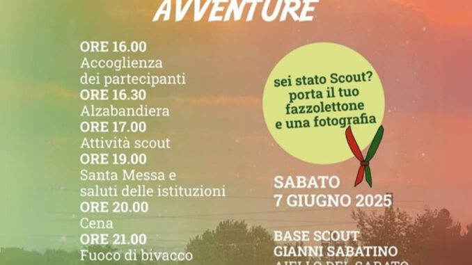 Sabato 7 giugno la Base Scout “Gianni Sabatino” di Aiello del Sabato ospiterà un evento di grande importanza per lo scoutismo irpino: le celebrazioni in onore dell’ottantesimo compleanno del Gruppo Scout AGESCI Avellino 1. Durante la giornata, a partire dalle 16:00, sarà possibile vivere autentiche esperienze scout, all’insegna di ricordi, divertimento e natura. Le attività termineranno nelle ore serali, non prima dell’immancabile “fuoco di bivacco”. L’Avellino 1, il gruppo più antico della provincia, nacque il 10 marzo 1945 per volere del capo Elio Buontempo e dell’Assistente Ecclesiastico Pasquale Venezia, futuro vescovo di Avellino. I due, in un’Italia ancora dilaniata dalla guerra, accolsero 7 “lupetti”, 21 “esploratori” e 8 “pionieri”, dando inizio a un percorso che a distanza di 80 anni continua la propria missione educativa presso la Parrocchia del Cuore Immacolato di Maria ad Avellino. Ad oggi, la storia dell’Avellino 1 si inserisce in quella dell’Associazione Guide e Scout Cattolici Italiani (AGESCI), movimento che vanta circa 180.000 iscritti in tutta Italia.