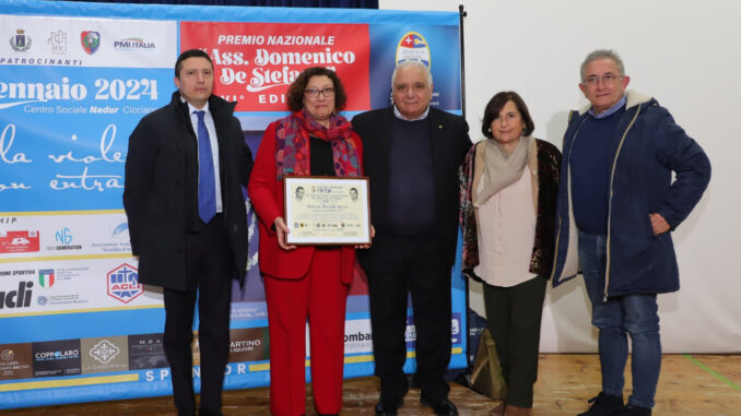 Al Centro Teatro Nadur di Cicciano, si è svolta la VI edizione del Premio Nazionale “Ass. Domenico De Stefano”. L’associazione ASD Acli Sei-Do-Kan ha omaggiato l’Assessore allo Sport del Comune di Cicciano Domenico De Stefano, scomparso all’età di 42 anni, con un evento che ha visto coinvolte molte figure che rappresentano a pieno i suoi valori. A presentare la serata al Teatro Nadur, il giornalista Giorgio Bruno e, al suo fianco, la giornalista e referente della comunicazione dell’associazione, Preziosa Lombardi. Madrina dell’evento la dottoressa Rossella Miccio, presidente di Emergency. Tra gli ospiti premiati, il parroco di Scampia don Aniello Manganiello per il sociale e il Procuratore Nazionale Aggiunto Antimafia, il dott. Francesco Mandoi, per la legalità. Per la sessione “alla memoria”, il Cavaliere Pippo Spalla e il Cavaliere della Patria Salvatore Canu. Premio ad honorem per lo sport a Saverio De Luca. Infine, premiata anche la madrina della serata, la dottoressa Rossella Miccio, presidente di Emergency. Presenti anche alcuni esponenti delle istituzioni locali e regionali: il sindaco di Cicciano, Giuseppe Caccavale. Il Consigliere regionale, On. Giovanni Mensorio. Il dott. Umberto Cristadoro, presidente provinciale ACLI Napoli. Il vice sindaco di Sassinoro, il dott. Guido Costante. A completare le figure istituzionali, la Prof. Angela De Stefano, presidente della Commissione per le assegnazioni del premio.