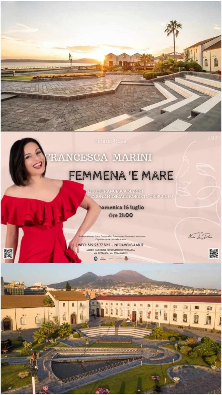 Primo appuntamento il 16 luglio, alle ore 21 con “Femmena ‘e mare”. Un “recital” della cantante e attrice Francesca Marini, che attraverso la sua voce, tra aneddoti, canzoni e poesie, omaggerà alcune delle più grandi interpreti femminili nate nelle città di mare! Brani tratti dalla canzone classica napoletana,