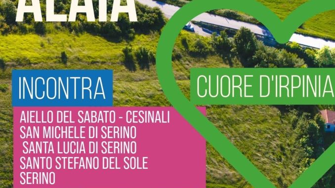 La locandina dell’iniziativa – caratterizzata da uno sfondo paesaggistico aereo, colori vivaci e il nome di Enzo Alaia in evidenza – annuncia la nuova tappa del viaggio nel Cuore d’Irpinia, in programma a Cesinali, mercoledì 19 novembre alle 17:30, presso il Teatro d’Europa.