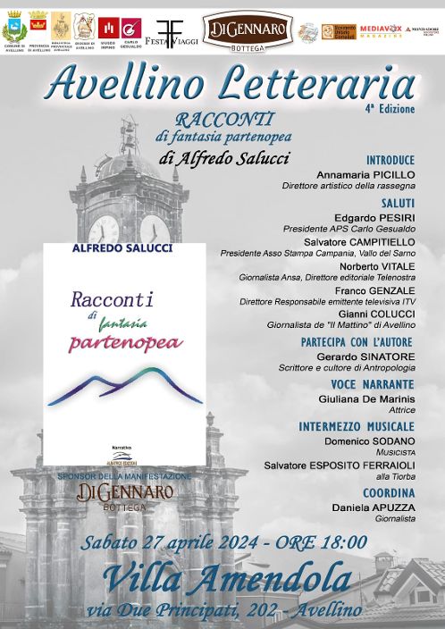 A inaugurare la quarta edizione della rassegna sarà la presentazione del libro dell’autore Alfredo Salucci: “Racconti di fantasia partenopea”, edito da Albatros edizioni. Si tratterà di storie originali, affascinanti, ricche di sfumature, trasformazioni e sorprese, in cui si mescolano elementi realistici e surrealistici. La fantasia diventa uno strumento prezioso che consente di cogliere e interpretare il mondo delle emozioni e dei sentimenti con più libertà e profondità.