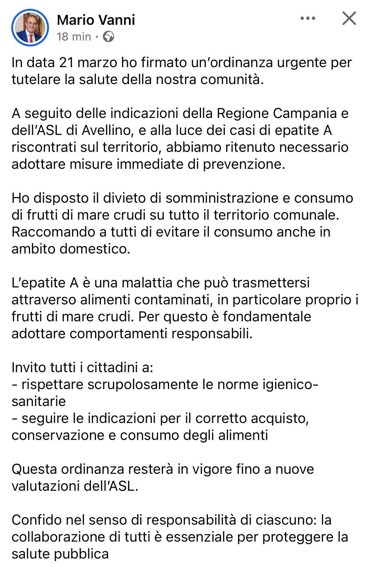Il sindaco di Altavilla Irpina, Mario Vanni, ha firmato un’ordinanza urgente a tutela della salute pubblica, a seguito dei recenti casi di epatite A registrati sul territorio.