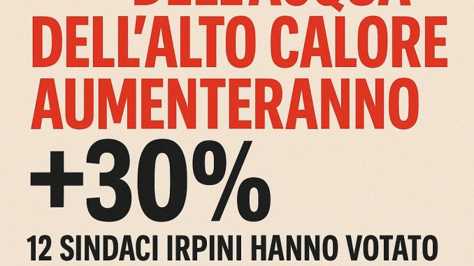 AVELLINO – Con una votazione che ha segnato una netta spaccatura tra i sindaci dell’Irpinia, è stato approvato l’aumento del 30% delle tariffe dell’acqua per gli utenti serviti da Alto Calore Servizi. Il via libera è arrivato durante la seduta del Consiglio Distrettuale dell’Ente Idrico Campano (EIC), con 12 voti favorevoli, 4 contrari e 2 astenuti. Sette i sindaci assenti.
