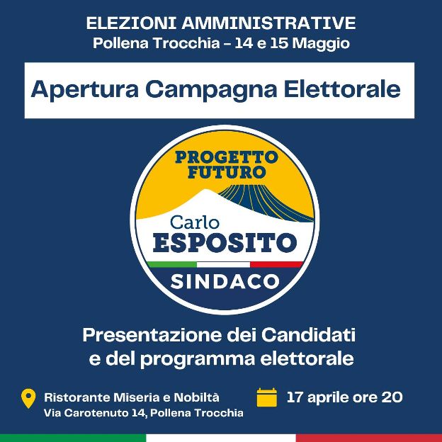 «Abbiamo cominciato un’opera di ammodernamento della nostra Pollena Trocchia e abbiamo intenzione di portarla a termine». Con queste parole il sindaco uscente della cittadina vesuviana, Carlo Esposito, ha ufficializzato la propria ricandidatura, sancita nelle scorse ore dalla presentazione della lista “Progetto Futuro” che lo sosterrà nel tentativo di riconfermare la fascia tricolore per i prossimi cinque anni. Sedici i componenti della stessa, candidati al consiglio comunale, in un equilibrio perfetto tra consiglieri comunali uscenti ricandidati e nomi nuovi, tra donne e uomini: Salvatore Auriemma, Antonella Borrelli, Anna Brasiello, Pasquale Busiello, Erika Capuano, Arturo Cianniello, Marilena De Simone, Vittoria Di Fiore, Alessia Esposito, Carmen Filosa, Vincenzo Filosa, Giuseppe Manno, Romeo Migliaccio, Francesco Pinto, Ivano Sannino e Ilenia Terracciano. La lista, il programma elettorale e le ragioni della candidatura saranno presentati lunedì sera presso il ristorante e pizzeria “Miseria e Nobiltà” di via Carotenuto 14, a partire dalle ore 20: è il primo di una serie di incontri pubblici programmati in diverse aree del territorio comunale per questa campagna elettorale. Carlo Esposito, nella sua veste di candidato per la riconferma a sindaco di Pollena Trocchia, ha anticipato: «Abbiamo avviato la costruzione di una città a misura d’uomo e sono ben consapevole del fatto che il lavoro non è ancora finito. Abbiamo realizzato tanti progetti, altri sono già in cantiere, altri ancora hanno bisogno di essere curati con la stessa capacità di visione che li ha pensati e generati. Con le capacità e le competenze che abbiamo messo in campo. Con una visione innovativa per il nostro territorio, che riesca a mescolare esperienza e genuinità, saper fare e voglia di gettare il cuore oltre gli ostacoli, con nuove idee, nuove energie e il contributo di tutti».