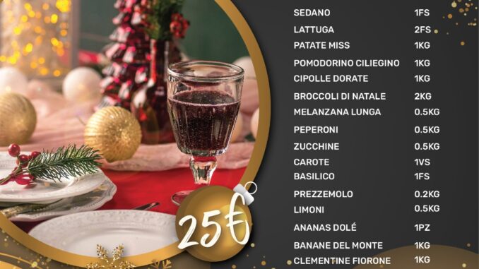 Questa settimana l’azienda De Luca, leader nella vendita di frutta e verdura consegnerà i suoi panieri fino a casa vostra fino alla vigilia di Natale, approfitta del paniere “SUPER 25” e delle “SUPER OFFERTE”. Chiama ai numero indicati e la tua confezione arriverà direttamente a casa tua.