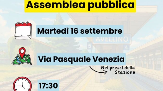 Martedì 16 settembre alle ore 17:30, in via Pasquale Venezia, nei pressi della stazione ferroviaria di Avellino, si terrà un’assemblea pubblica aperta a cittadini, studenti, pendolari, associazioni e istituzioni.