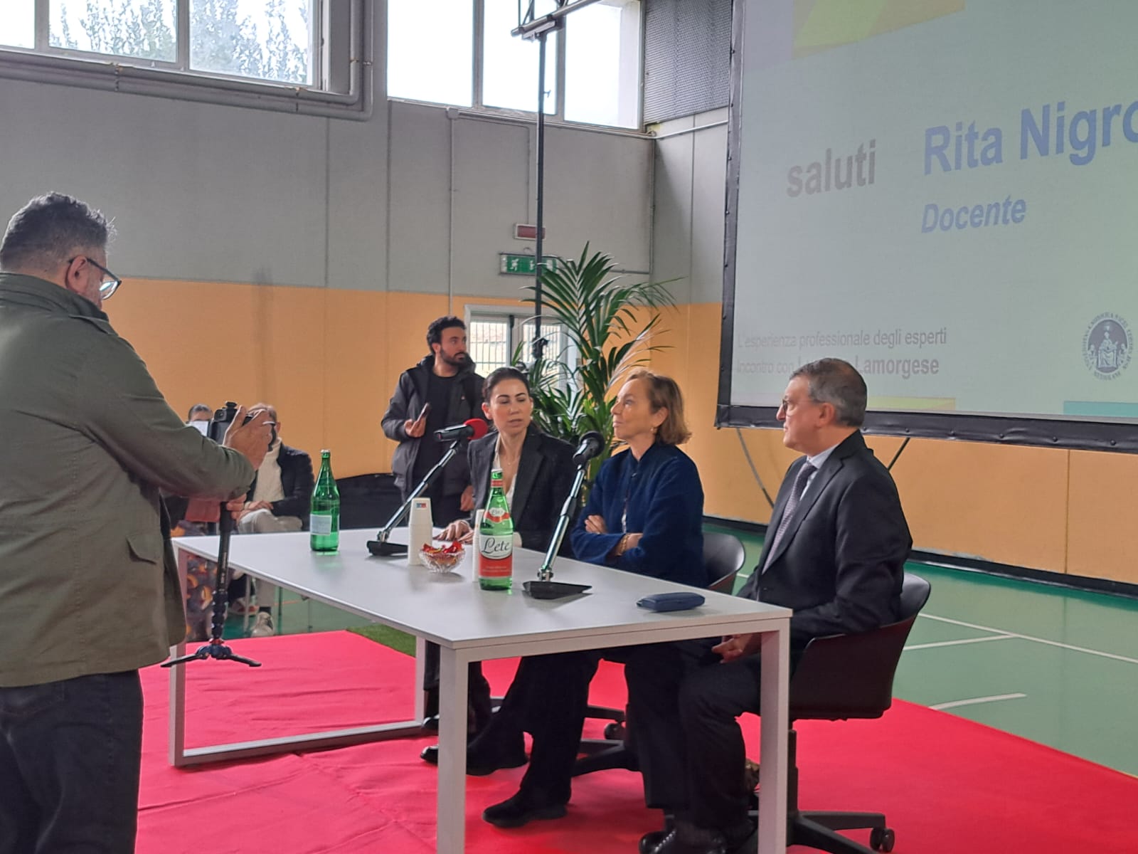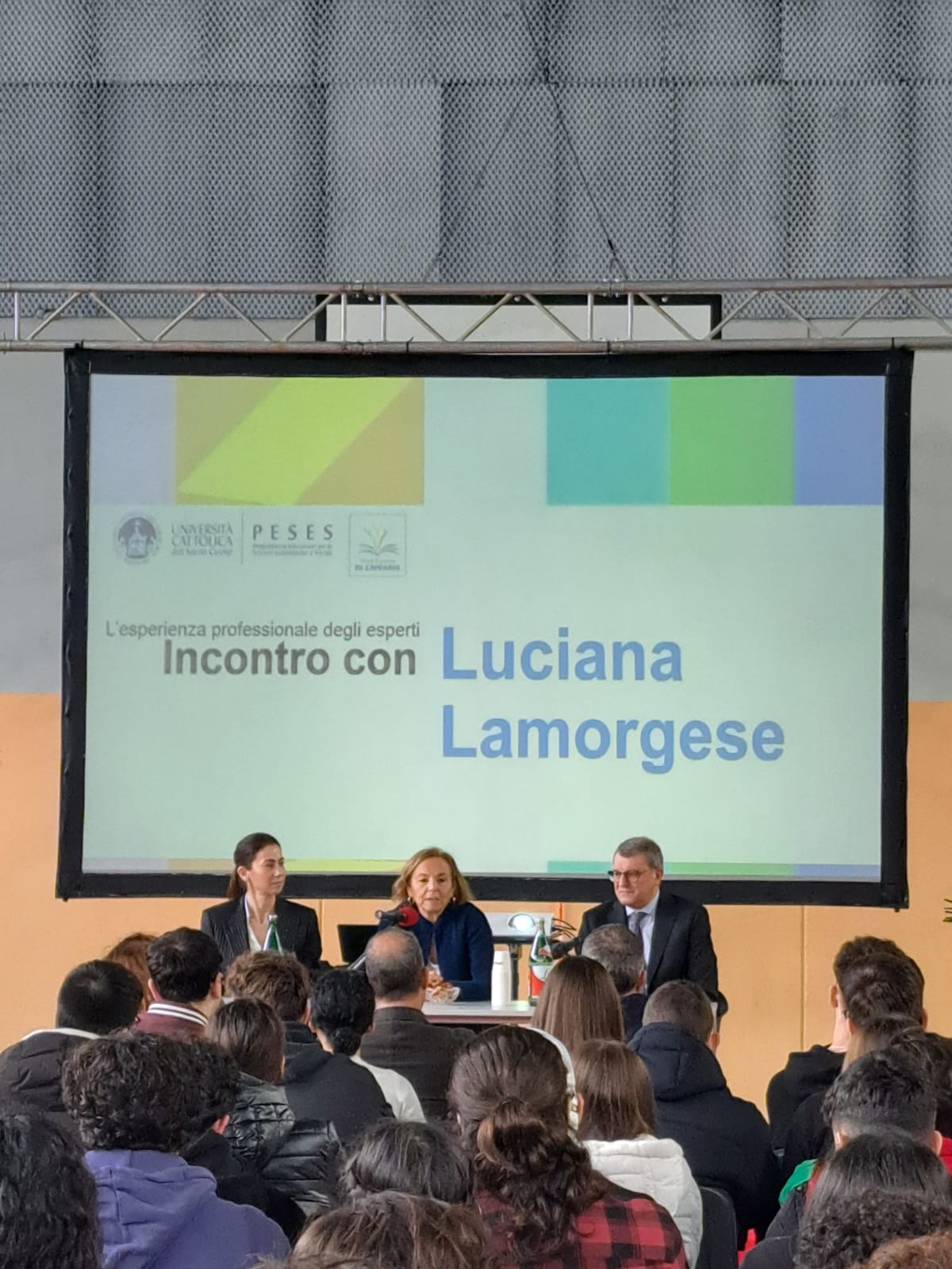 Mercoledì 19 febbraio il consigliere di Stato ed ex ministro dell’Interno Luciana Lamorgese è stata di nuovo ospite presso l’Istituto De Caprariis per confrontarsi con gli studenti riguardo alla propria esperienza all’interno delle istituzioni. L’iniziativa è nata dalla collaborazione del liceo atripaldese con l’Università Cattolica di Milano e il PESES, progetto portato avanti dall’economista Carlo Cottarelli. “Condivisione” – di scopi e di conoscenza – la parola chiave della giornata, sulla quale l’ex capo dell’Interno ha posto particolare enfasi in merito alla sinergia con le istituzioni locali e gli enti intermedi. Condivisione da perseguire anche a livello europeo, nel quale Lamorgese ha svolto un importante ruolo nel difficile tentativo di orientare i ventisette verso i medesimi obiettivi. La discussione si è poi spostata sulle domande degli studenti, incuriositi dal curriculum professionale dell’ospite e in particolare dai tre anni trascorsi al Viminale. “Studiate, siate sempre impegnati, sentitevi cittadini e non sudditi”, il messaggio finale di Luciana Lamorgese. “Voi avete la possibilità” – ha chiosato l’ex prefetto rivolgendosi alla platea – “con la scuola e la cultura, di essere cittadini a pieno titolo perché il futuro è vostro ed è tempo di speranza”.