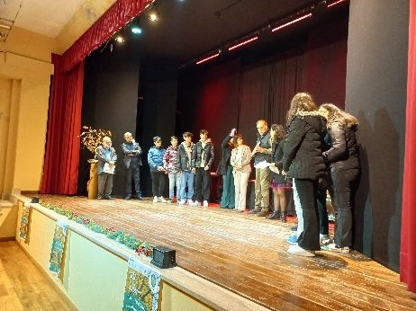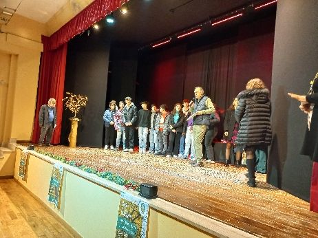 L’aver preso possesso della platea del Biancardi con disinvolta e, al contempo, composta sicurezza di sé, costituiva il primo tassello, posto in ideale dimora, di quello che si sarebbe ben presto rivelato il protagonismo socio–didattico ed informato sviluppato dalle ragazze e dai ragazzi, una volta preso possesso del palco per le premiazioni individuali, di gruppo e classe. Era il protagonismo, innescato dalla giostra delle interviste condotte da Carlo Melissa, Nino Petrillo, Pietro Luciano, Giusy De Laurentiis e Margherita Masucci – impegnate anche nella lettura delle motivazioni- con le ragazze e i ragazzi gratificati, insieme con le Scuole di appartenenza, dal conferimento delle artistiche e pregevoli composizioni dei Mai d’Argento.