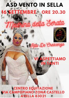 Due giorni di spettacolo ad Avella presso il maneggio “Vento in Sella”, si inizia il 15 settembre con l’ aperitivo in musica alle 20,30 ospite Rosanna Senatore e Bebecita e sabato 16 settembre sempre alle 20,30 c0n la presenza della ticktoker Rita De Crescenzo. Il Centro equitazione “Vento in Sella” si trova ad Avella alla via Campopiano zona Castello.
