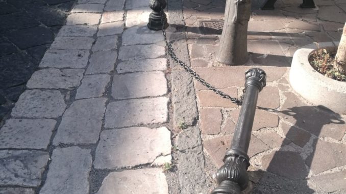 AVELLA. Auto abbatte paletto di protezione di piazzetta Maiella 26/07/2019 binews.it ATTUALITA', AVELLA 0 Letteralmente buttato giù, sicuramente da un auto in corsa durante la notte, un paletto in ferro che fungeva da protezione, con apposite catene, a piazzetta Maiella ad Avella.