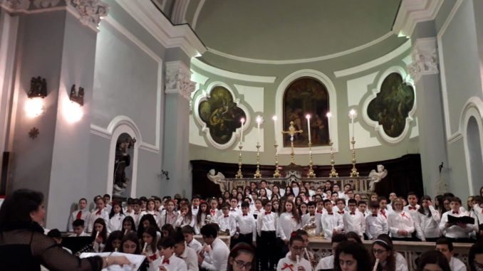 Si è tenuto oggi presso il Convento francescano della Santissima Annunziata di Avella, il “Gran concerto dei guerrieri della pace”, manifestazione natalizia organizzata dall’Istituto Comprensivo avellano “Mons. Pasquale Guerriero” diretto dal prof. Vincenzo Gagliotta. In una chiesa gremita i giovani allievi della secondaria di primo grado hanno suonato e cantato brani di autori famosi. Gli applausi hanno fatto da cornice ad un’iniziativa impeccabile e molto travolgente. Dopo l’introduzione del dirigente scolastico prof. Vincenzo Gagliotta, delle autorità locali e religiose, i giovani allievi hanno dato prova delle loro capacità canore e musicali. Sempre nel chiostro hanno allestito un ricchissimo mercatino di Natale fatto con oggetti realizzati sempre dagli alunni dell’istituto avellano. Ecco il video intervista e le foto