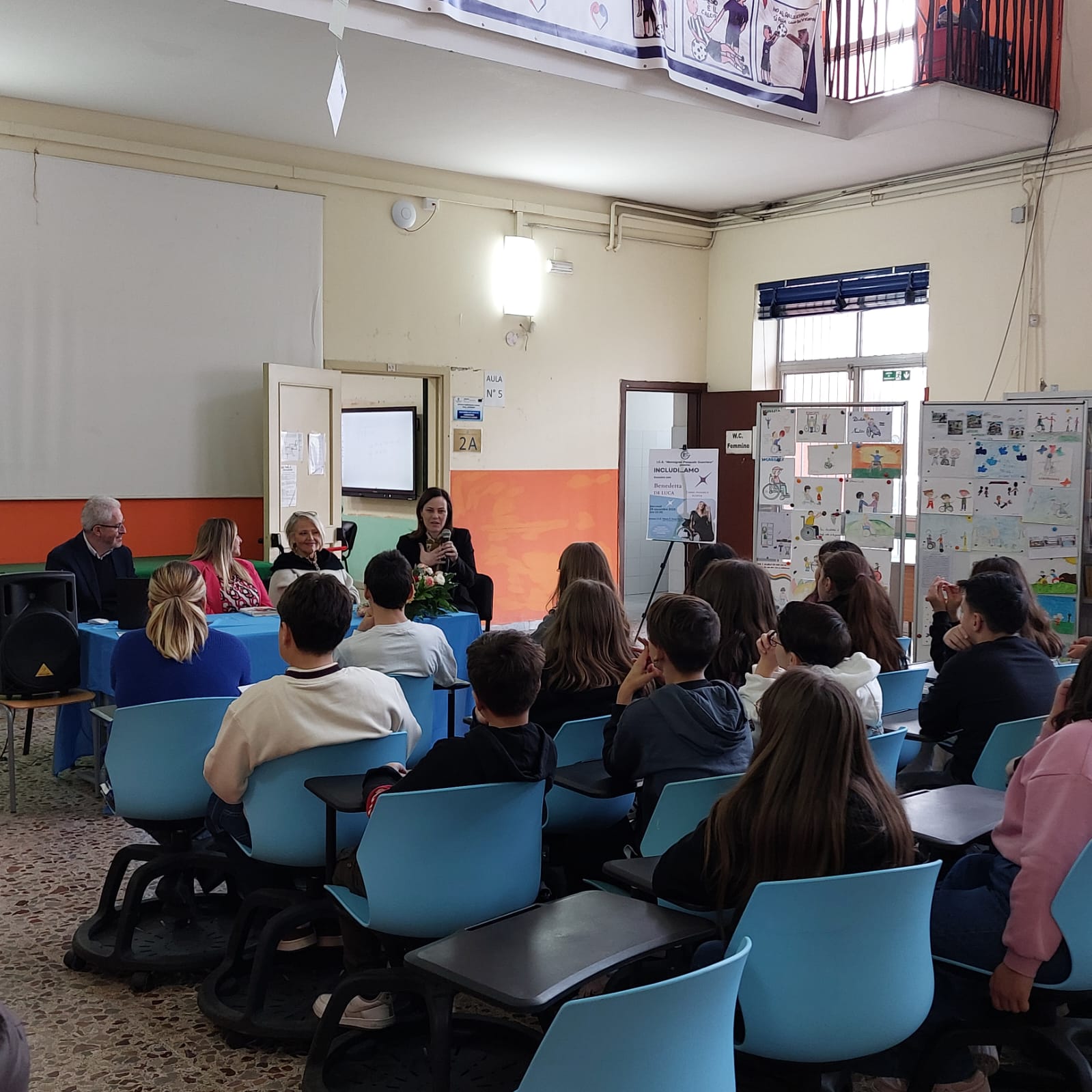 In previsione della giornata Internazionale delle persone con disabilità, che si celebrerà il 3 dicembre, sin dai primi giorni di novembre, la Scuola Secondaria di I Grado dell’I.C.S “Mons. P. Guerriero” di Avella ha promosso attività didattiche di sensibilizzazione sul vasto e delicato tema della disabilità, arricchendo le giornate scolastiche con dibattiti, produzione di elaborati, percorsi di ricerca e approfondimenti, per abbattere tutti i tipi di barriere, non solo quelle fisiche, ma anche quelle culturali, ambientali e sociali all’insegna di una presa di coscienza di cosa significhi la disabilità, così da attivare veri processi di inclusione. Oggi, inoltre, 29 novembre, alle 10:30, nello spazio polifunzionale della scuola, a parziale conclusione del percorso, con fermento e trepida attesa, si è svolto l’incontro con la Dott.ssa Benedetta De Luca, disability influencer, nata con una rarissima forma di disabilità, l’agenesia del sacro, che colpisce circa 1 su 60 mila nati. Come può essere immaginabile, la sua infanzia è stata costellata di interventi e di lunghi periodi in ospedale, che però l’hanno portata ad essere la donna che è oggi: dottoressa in giurisprudenza, fondatrice di un brand di moda inclusiva per ragazze disabili, organizzatrice di eventi con modelle disabili e una delle prime fashion influencers disabili in Italia. Tramite i suoi canali, Benedetta si fa portavoce di un messaggio di inclusione e bodypositive che cerca di abbattere gli stereotipi, facendo capire che anche una donna disabile può essere bella e femminile. L’incontro di oggi ha avuto tra i principali obiettivi quello di sviluppare negli alunni la consapevolezza della diversità come valore da vivere e da condividere. Benedetta, attraverso la sua storia, ha emozionato tutta la comunità scolastica e ha trasmesso un messaggio che ha avuto il potere di abbattere le barriere mentali che, non di rado, rappresentano lo zoccolo duro alle pratiche veramente inclusive. Gli argomenti che ha approfondito sono stati vari e tutti meritevoli di un ascolto attivo: ha spaziato dal bullismo a scuola a quello praticato, spesso inconsapevolmente, sui social media, invitando i ragazzi a farne un uso sano, ha incitato con coraggio ed entusiasmo alla costruzione di un buon grado di autostima e amor proprio, per la formazione personale all’insegna della valorizzazione della diversità. Ha sottolineato con forza che per realizzare tutto ciò bisogna partire dalla scuola, primo luogo di socializzazione e di costruzione delle relazioni interpersonali.