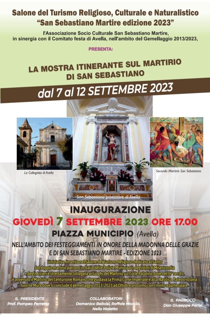 L’Associazione socio culturale San Sebastiano Martire partita da Salvitelle (SA) nel 2013, dopo le tappe del Vallo di Diano: Sala Consilina, Sant’Arsenio, S Pietro al Tanagro Casalbuono e Controne, in occasione dei festeggiamenti patronali in onore della Madonna delle Grazie e San Sebastiano l’associazione sarà presente ad Avella per presentare “LA MOSTRA ITINERANTE SUL MARTIRIO DI SAN SEBASTIANO”. L’evento si svolgerà dal 7 al 12 settembre.