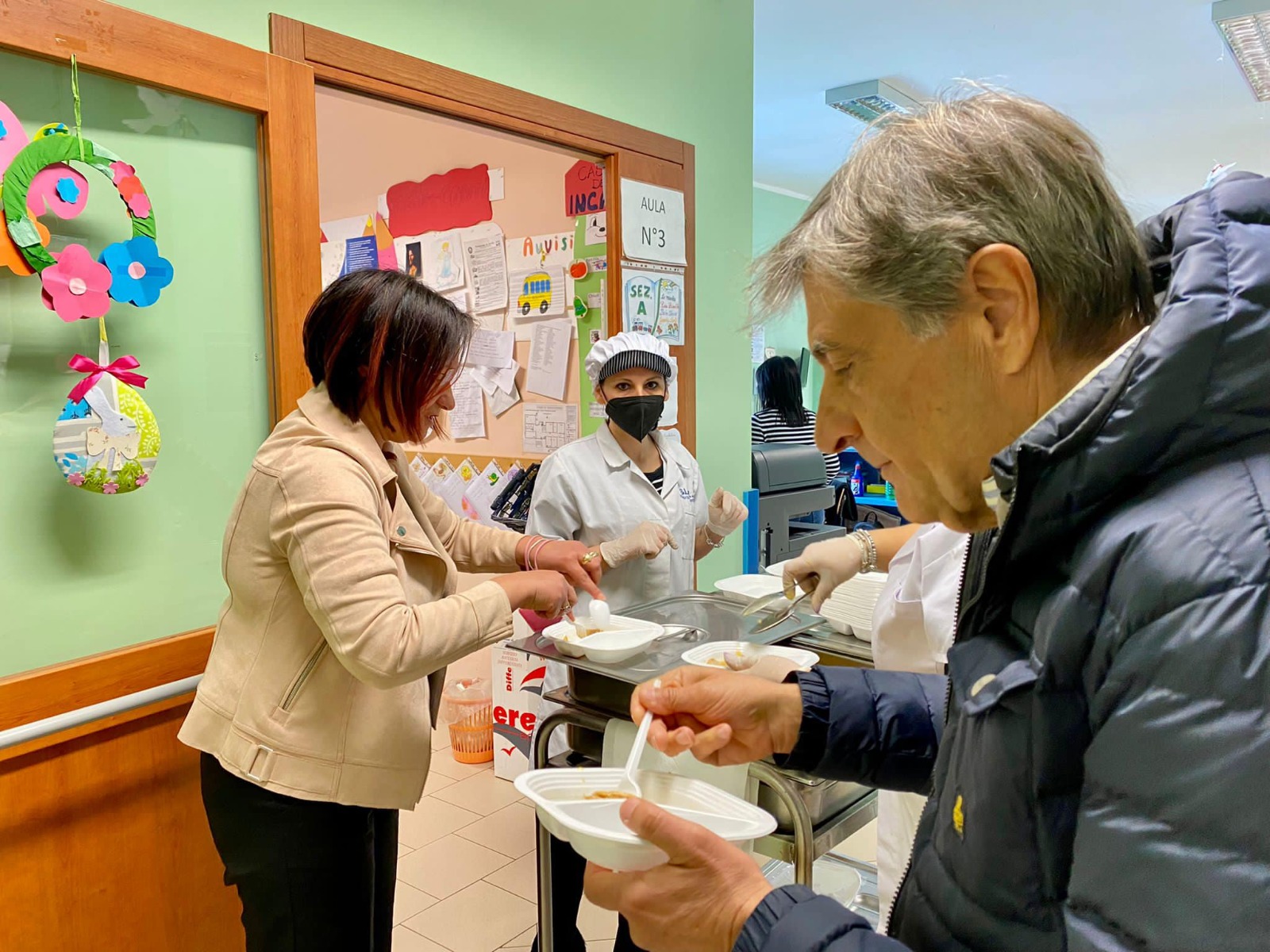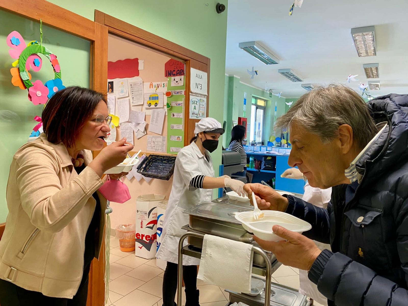 A seguire il Sindaco e l’Assessore hanno partecipato alla consumazione del pasto della giornata presso il plesso dell’infanzia per condividere con la popolazione scolastica il menù del giorno.
