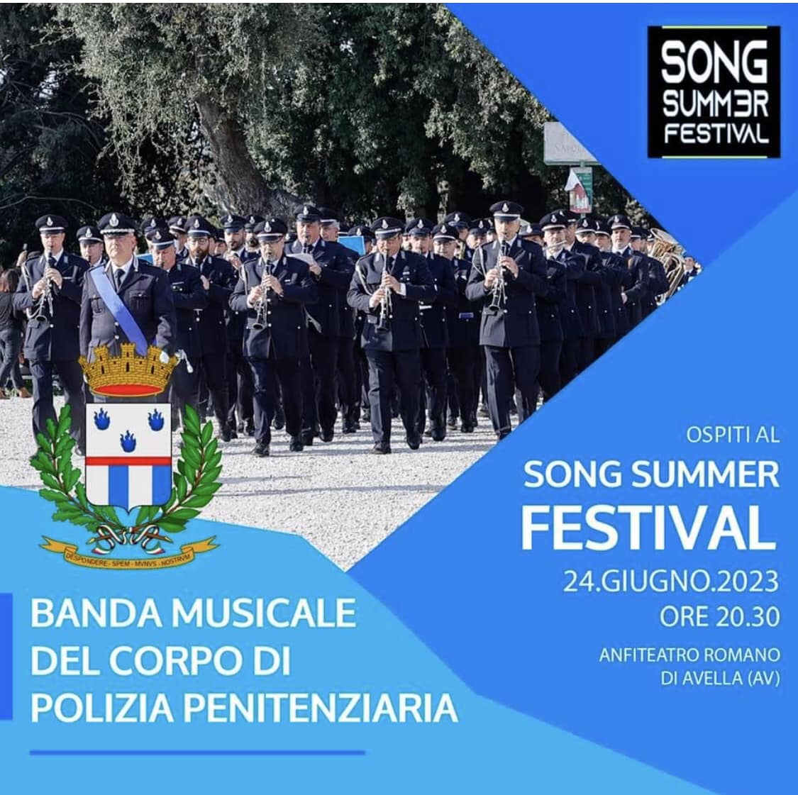 Sabato 24 giugno 2023 alle ore 18:00 la banda musicale nazionale del Corpo di polizia penitenziaria , commemorerà i due colleghi della polizia penitenziaria Aniello Vittoria e Michele Gaglione, medaglia D’oro al valore civile alla memoria, presso piazza convento Avella (AV). La banda proseguirà sfilando lungo il corso Vittorio Emanueke con la marcia d’ordinanza fino all’anfiteatro Romano dove alle ore 20:30 aprirà la serata del Song Sammer Festival organizzata dalla GRS ( gruppo radio Sperone) in collaborazione con radio Avella, RPZ e tutti i forum e proloco del mandamento Baianese.