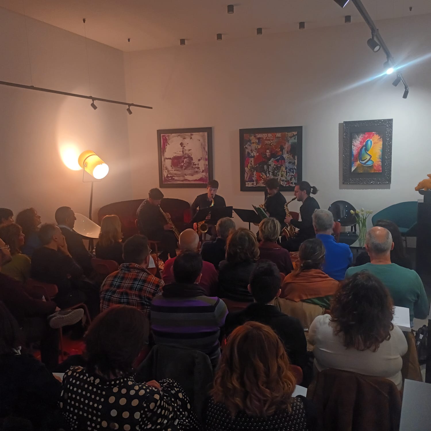 Una formazione di straordinari e giovani talenti composta da Antonio Fuoco sassofono soprano, Mario Savarese sassofono contralto, Gennaro D’Andreti sassofono tenore e Federico Siciliani sassofono baritono, con un carisma e una raffinatezza che rappresenta un unicum nell’attuale panorama musicale italiano. La serata, che rientra nell’ambito della rassegna “serate armoniche”, ideata dalla Direttrice Artistica musicale Maria Sirignano, si è illuminata di melodie cristalline e vibranti che hanno catturato l’attenzione di un foltissimo pubblico, appassionato e attento, trasformando la sala in un’atmosfera unica ed affascinante.