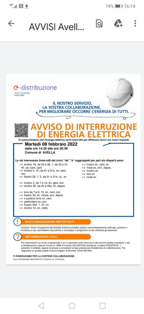 HomeATTUALITA'AVELLA. Martedì 8 febbraio, interruzione dell energia elettrica