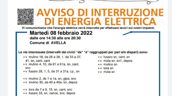 AVELLA. Martedì 8 febbraio, interruzione dell energia elettrica