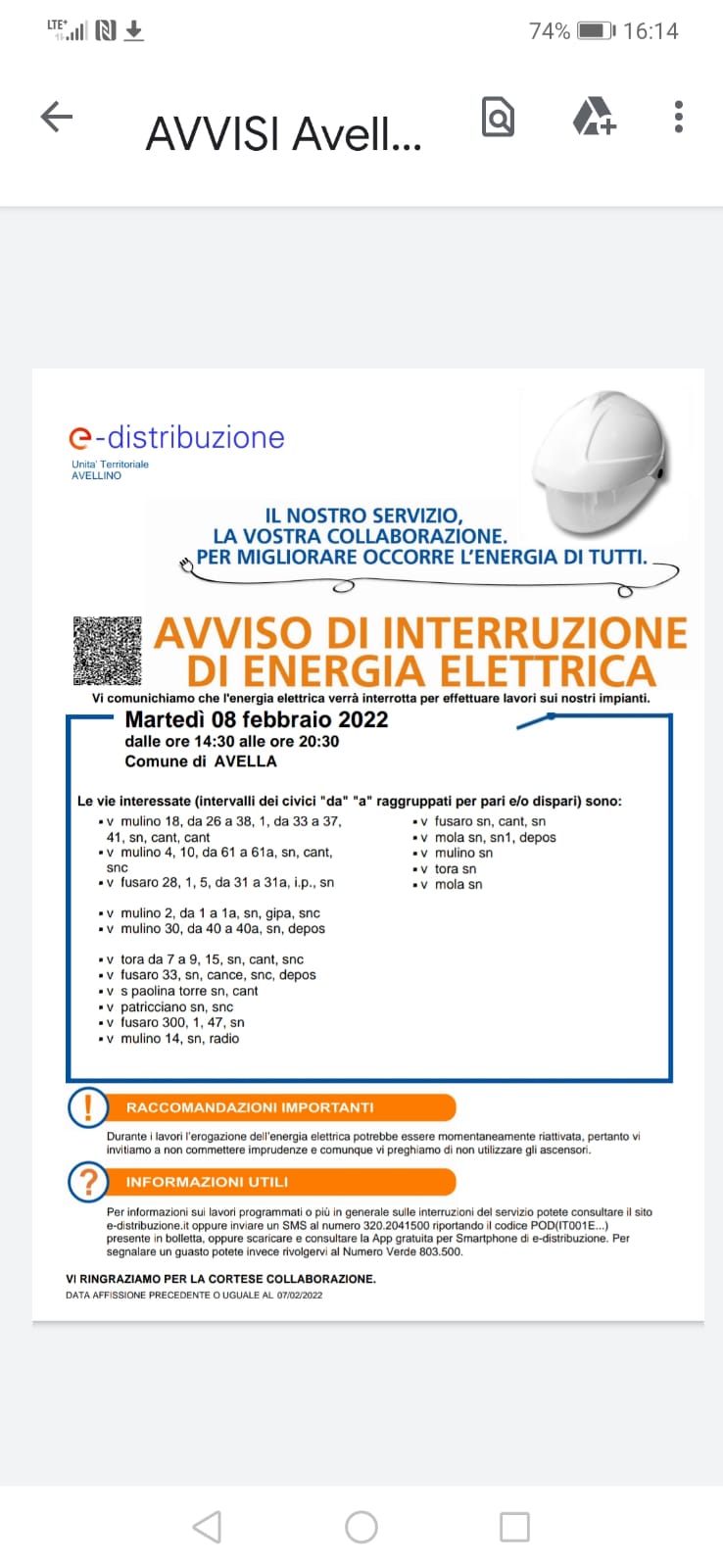 Martedì 8 febbraio, interruzione dell energia elettrica nelle strade indicate nella locandina allegata.AVELLA. Martedì 8 febbraio, interruzione dell energia elettrica