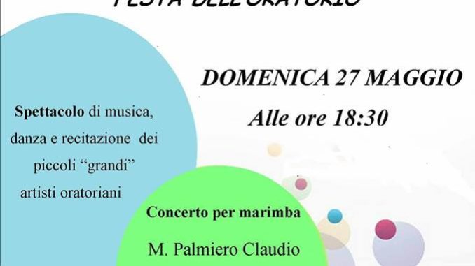 Domenica 27 Maggio, alle ore 18:30, si terrà la consueta festa “di fine anno” organizzato dall’oratorio Canossiano. I dolci bambini, aiutati dalle giovani e bravissime animatrici, si cimenteranno in spettacoli di musica, danza e recitazione. Durante lo spettacolo si terrà anche il Concerto per Marimba dove si esibirà il maestro Claudio Palmiero, con la partecipazione di Michele Gambardella, Egidio Conte e Gaetana Napolitano. I bambini “vi aspettano” presso l’Oratorio Canossiano di Avella. Annarita Franzese