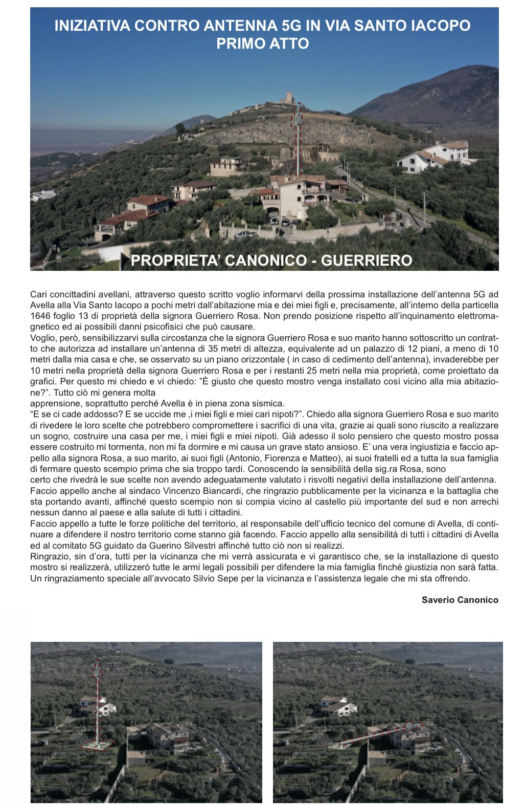 AVELLA. Polemica sullinstallazione dellantenna 5G in via Santo Iacopo: Un appello per la sicurezza dei cittadini AVELLA. Polemica sullinstallazione dellantenna 5G in via Santo Iacopo: Un appello per la sicurezza dei cittadini