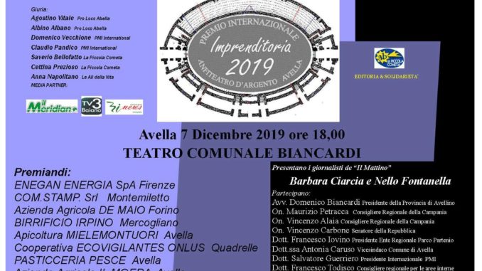 Avella. Teatro “Biancardi”, 7 dicembre Premio Anfiteatro d’Argento per aziende green e rispettose del codice etico delle imprese