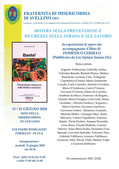 Tutte le opere accompagnano il libro ‘’ Basta! Prevenzione e sicurezza sulla strada e sul lavoro “ del prof. Domenico Cerullo, pubblicato dal Csv Irpinia Sannio Ets.