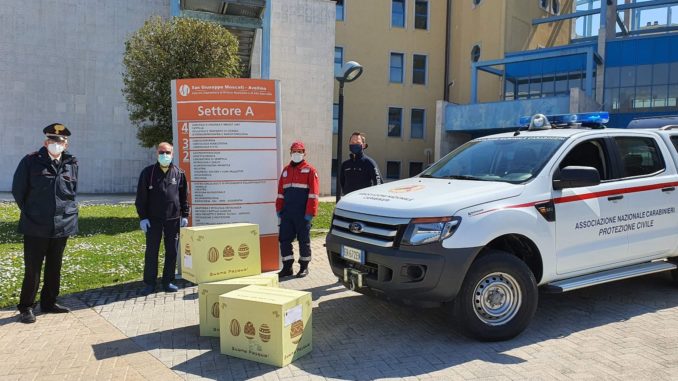 Donare un sorriso ai piccoli pazienti ricoverati al Reparto di Pediatria dell’ospedale Moscati di Avellino, in questo momento difficile per l’emergenza sanitaria in atto: con questa “mission” l’Associazione Nazionale Carabinieri ha provato ad alleviare la costretta permanenza nella struttura sanitaria dei bambini e dei loro familiari, proprio in questi giorni che precedono le festività pasquali. Questa mattina i volontari del Coordinamento Regionale Campania, capeggiato dal Luogotenente Marino Franzone, accompagnati da una rappresentanza di Carabinieri del Comando Provinciale di Avellino, hanno donato una quarantina di uova pasquali per i piccoli pazienti. L’iniziativa è stata resa possibile con la disponibilità del Direttore dell’Unità Operativa di Pediatria, Dott. Antonio Vitale, che ha ringraziato tutti i protagonisti “di questo bellissimo gesto di solidarietà”.