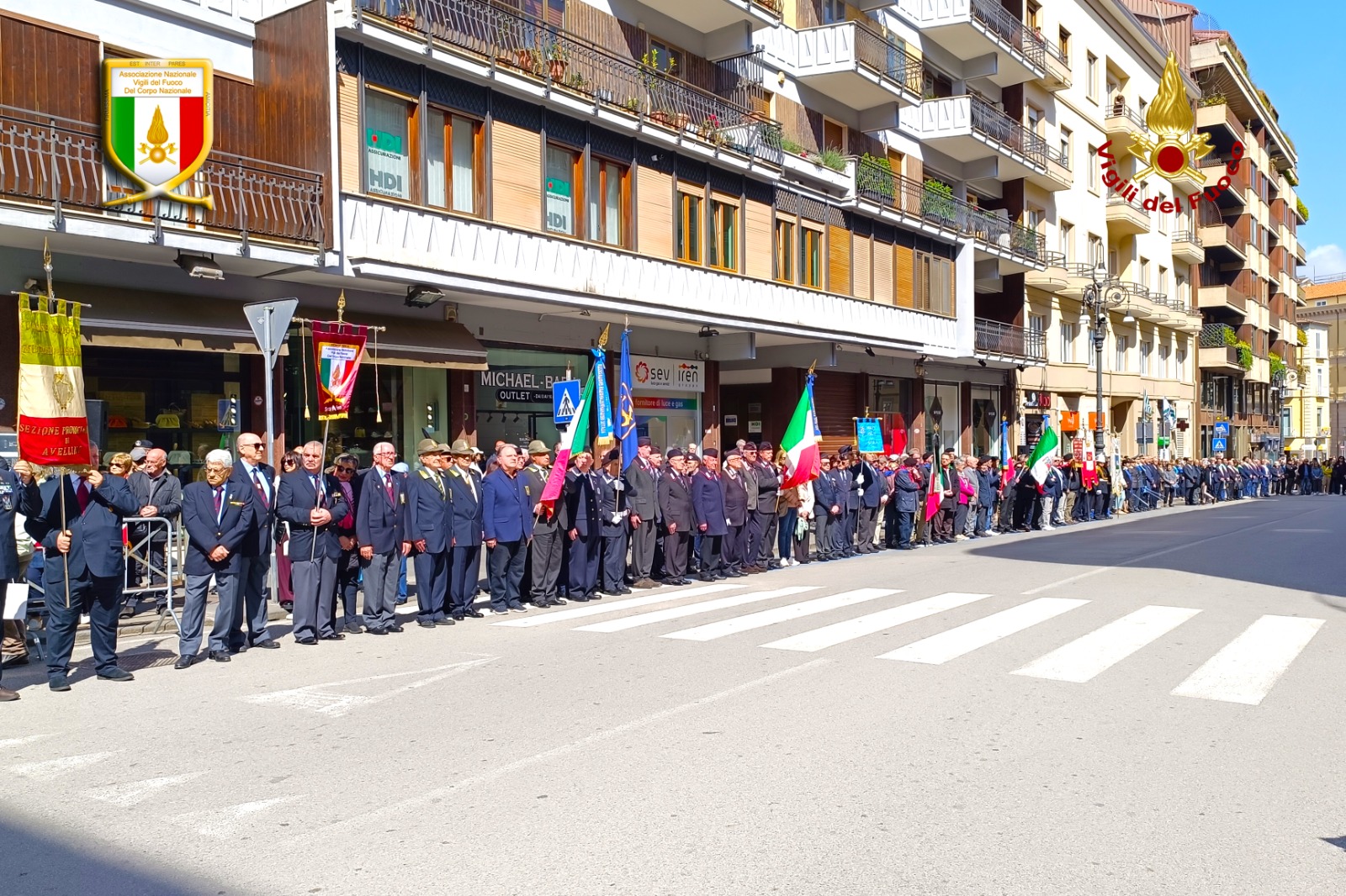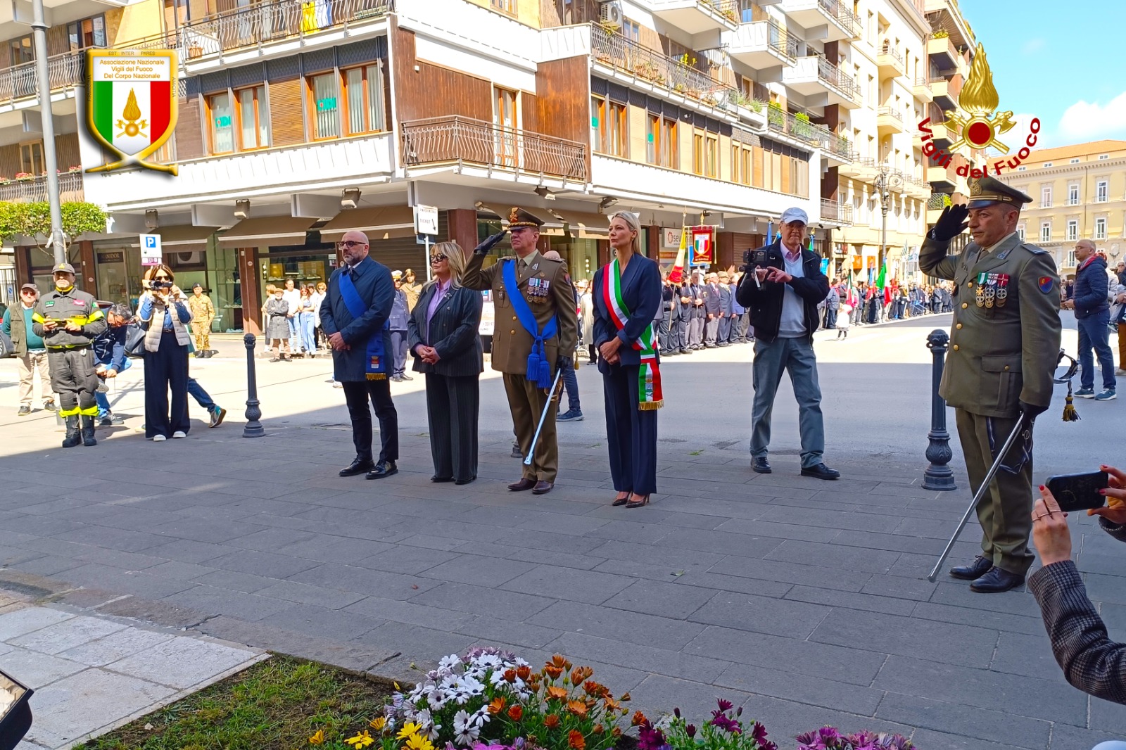 Oggi 25 aprile è stato celebrato il 80° anniversario della Liberazione d’Italia, e come da tradizione la cerimonia è stata svolta in via Matteotti ad Avellino alla presenza di Autorità civili e Militari. I Vigili del Fuoco di Avellino con in testa il Comandante Arch. Maria Angelina D’Agostino, sono stati presenti nello schieramento di tutte le forze armate e con il personale dell’Associazione Nazionale del Corpo sezione di Avellino insieme a tutte le associazioni d’Arma. La cerimonia che si è svolta alla presenza di un folto numero di cittadini ha avuto come epilogo la deposizione di una corona di alloro al monumento dei Caduti. Il Comandante D’Agostino, alla fine della parata ha voluto ringraziare il personale operativo intervenuto, i componenti della locale Associazione Nazionale del Corpo e quello del servizio documentazione che come sempre ha realizzato le immagini della cerimonia.