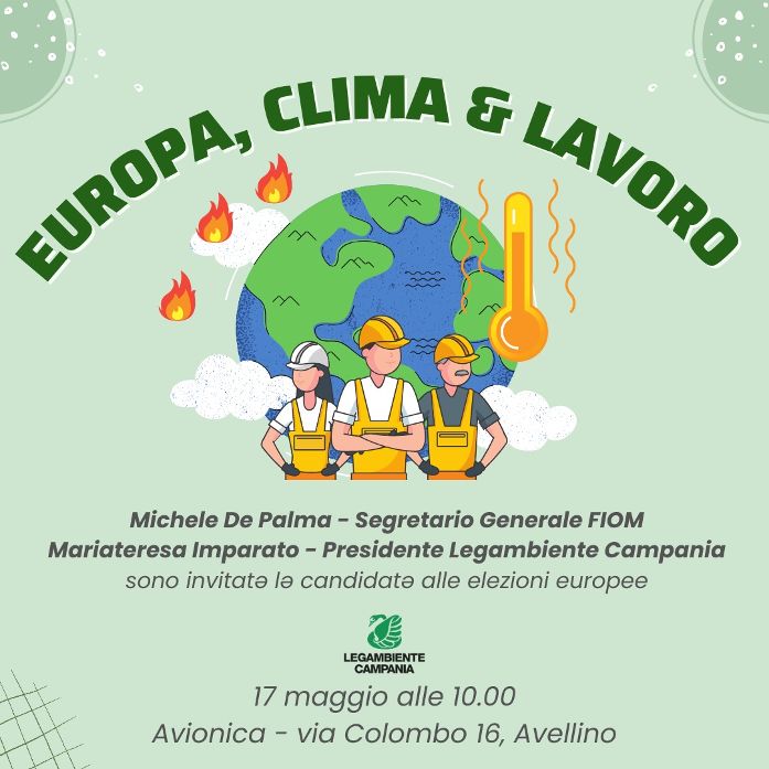 Legambiente Campania e il circolo di Avellino sono lieti di annunciare un dibattito sulle elezioni europee che avrà luogo il 17 maggio alle ore 10:00 presso il circolo Arci Avionica in via Colombo 16 ad Avellino.