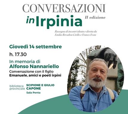 Giovedi 14 settembre alle ore 17.30 presso la Biblioteca Provinciale ‘’S. e G. Capone’’, avrà luogo ‘’In memoria di Alfonso Nannariello, Coversazione con il figlio Emanuele e poeti irpini’’.