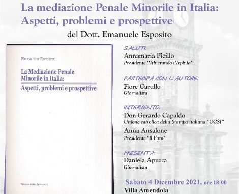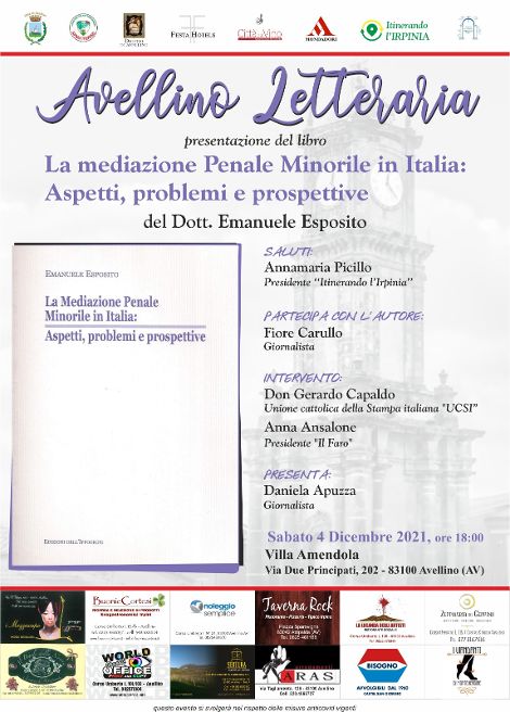 Avellino Letteraria sabato 4 dicembre “La mediazione penale minorile in Italia: Aspetti problemi e prospettive”