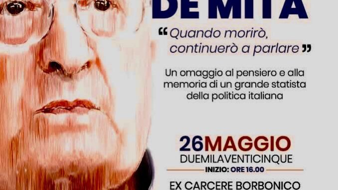 Avellino si prepara a ricordare Ciriaco De Mita con un evento di rilievo nazionale, in programma domenica 26 maggio alle ore 16:00 nel Complesso Monumentale del Carcere Borbonico. La cerimonia, intitolata “Quando morirò, continuerò a parlare”, rappresenta il primo momento ufficiale di commemorazione pubblica dedicato al grande statista irpino, figura centrale della Prima Repubblica e protagonista indiscusso della vita politica italiana per oltre quarant’anni.