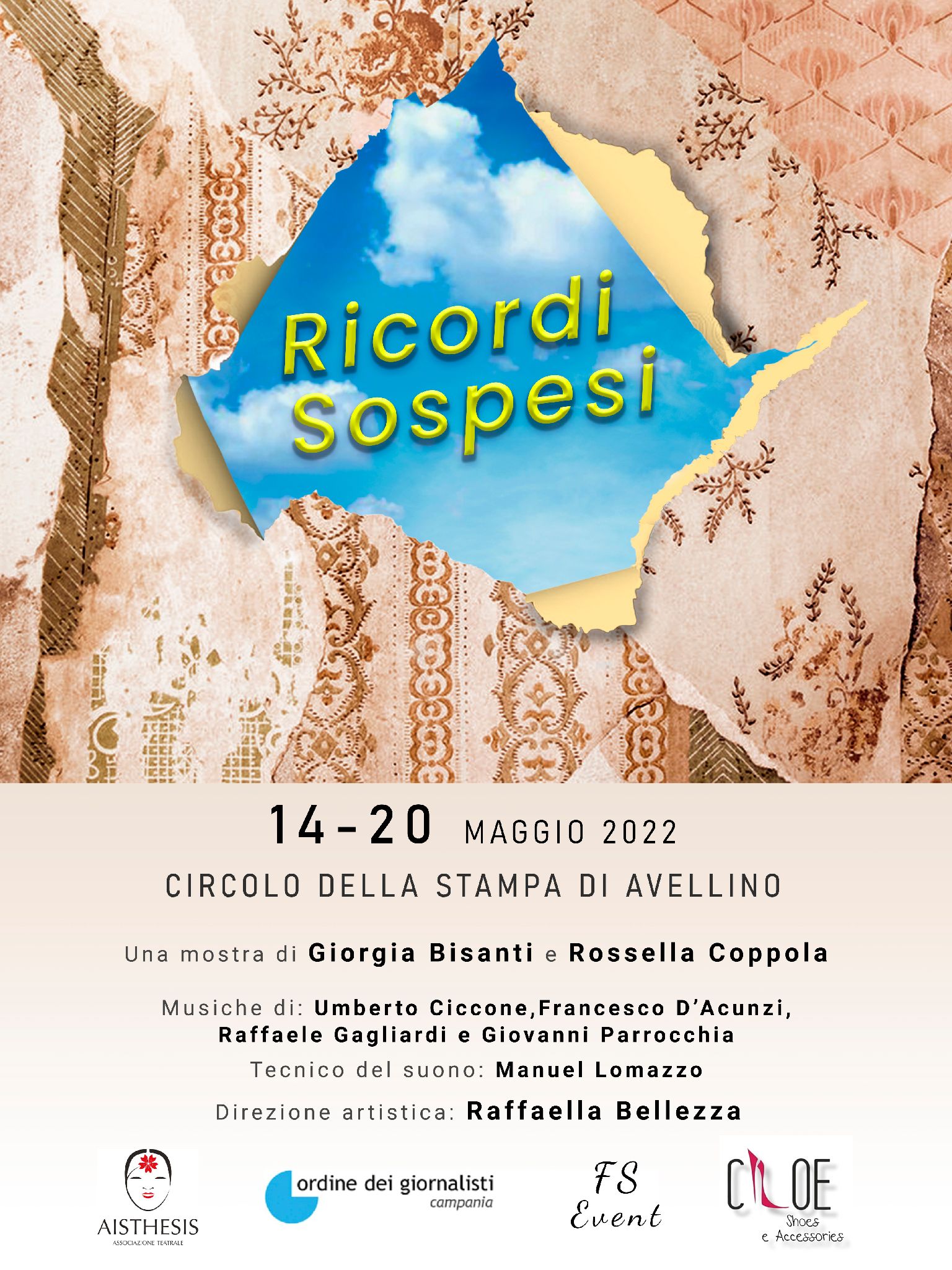 “Ricordi sospesi” è il titolo della mostra multidisciplinare, che sarà allestita dal 14 al 20 Maggio, presso il Circolo della Stampa di Avellino, in Corso Vittorio Emanuele n. 6 e visitabile dalle 10,00 alle 13,00 e dalle 17,00 alle 20,00.