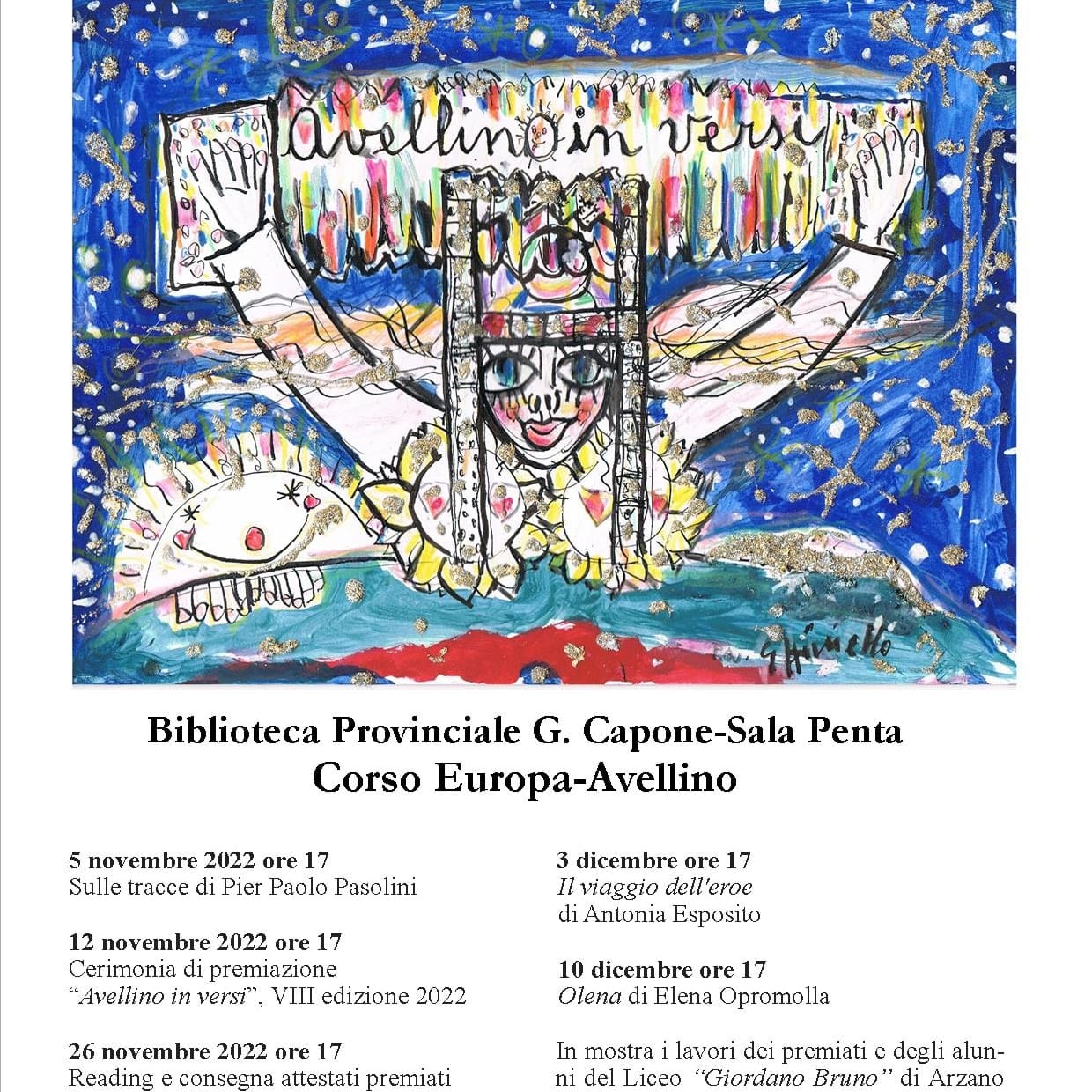 Il giorno 5 novembre 2022 alle ore 17 si terrà presso la Biblioteca Provinciale di Avellino, Sala Penta di Corso Europa, 251, l’evento “Sulle tracce di Pier Paolo Pasolini”, nell’ambito della Rassegna letteraria “Avellino in versi”. L’iniziativa è patrocinata dalla Provincia di Avellino in collaborazione della società ATB Consulting e il centro studi storici “Il Saggio”.