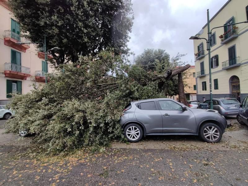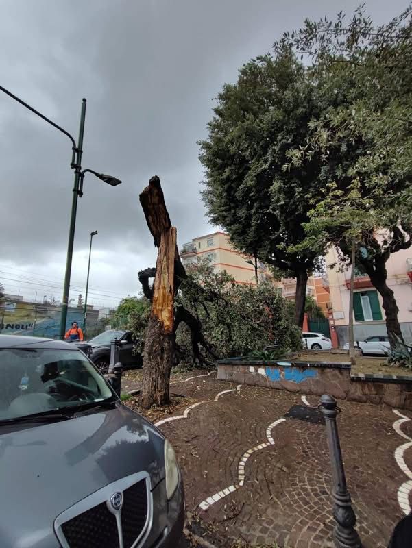 Paura nella parte alta di Viale Campi Flegrei, a Bagnoli, dove nel pomeriggio un albero è improvvisamente crollato finendo su alcune auto parcheggiate lungo la carreggiata.