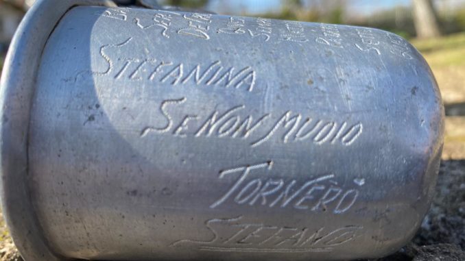 Un tassello del tutto speciale, innestato nella trama del Teatro civile dai ragazzi e dalle ragazze della terza classe della sezione F del plesso del “Giovanni XXIII–Alda Merini”, era costituito dalla configurazione del power point, che narra la vicenda di Stefano Peluso, fatto prigioniero dai tedeschi dopo l’armistizio dell’ 8 settembre del 1943. Una vicenda che Stefano Peluso racconta, anche con invocazioni alla Madonna, con le minute e ben leggibili incisioni impresse sulla piccola gavetta personale in alluminio, di cui potevano disporre i prigionieri per l’unica e sola brodaglia che veniva loro somministrata ogni giorno. Uno straordinario cimelio di famiglia custodito gelosamente dalla figlia Santina, prodiga di generosità e affabile infermiera, e dalla nipote, la professoressa Marilena Alaia, docente nel “Giovanni XXIII” .
