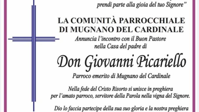 BAIANESE. La morte di Don Giovanni. Il ricordo di don Giuseppe Autorino e degli amici della Pro locoIl Signore Risorto inondi di luce la anima, perché possa partecipare alla gloria celeste. La comunità interparrocchiale di Mugnano del Cardinale prega per la morte di don Giovanni Picariello, parroco emerito. Don Giuseppe Autorino