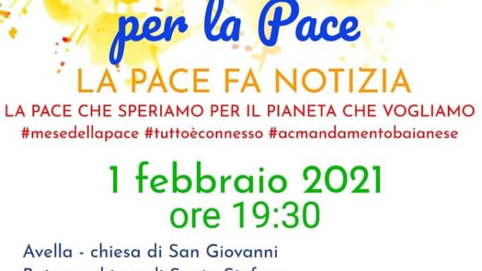 L’ azione cattolica mandamento baianese ha organizzato la “Veglia di preghiera per la Pace” per lunedì 1 febbraio ore 19.30. In ogni paese nella chiesa prescelta la comunità parrocchiale si unirà in preghiera.