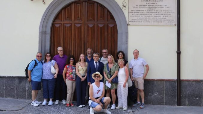 Baiano, oggi, grazie a una giornata memorabile, si è presentata al mondo come un piccolo gioiello dell’anima campana, dove la storia vive, le tradizioni si raccontano e l’ospitalità si fa arte. E’ stato un momento speciale per la comunità ,che ha accolto con calore un gruppo di turisti americani di origine baianese, tornati per riscoprire le proprie radici e l’identità familiare: discendenti della famiglia Vetrano, originaria della storica zona dei Vesuni. I loro antenati vissero a Baiano fino al 1926,per poi trasferirsi a Napoli, in via Foria, ed emigrare successivamente in America. La loro capostipite, Carmina Vetrano, fu una figura di grande rilievo: prima insegnante di Baiano, attiva già nel 1830.