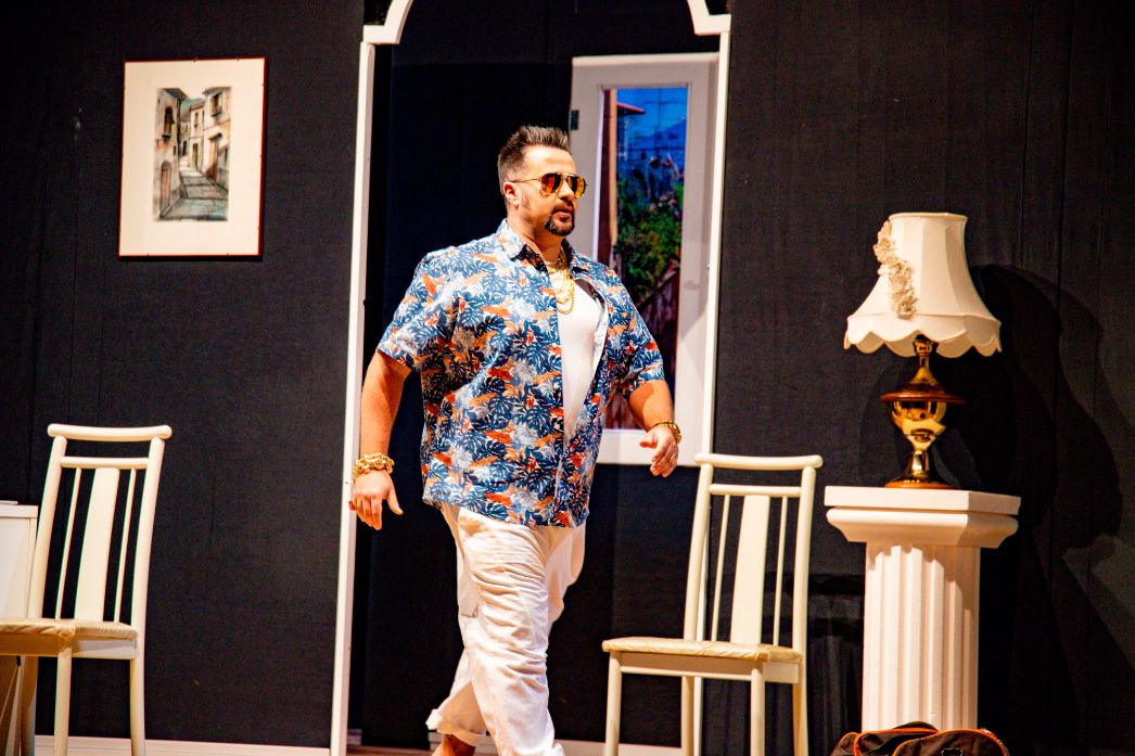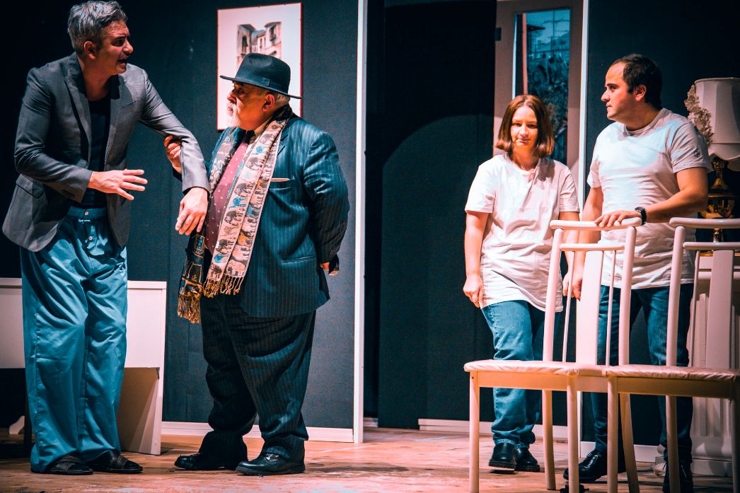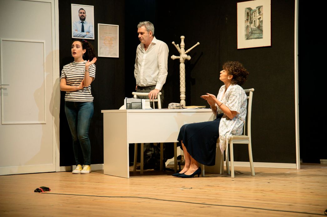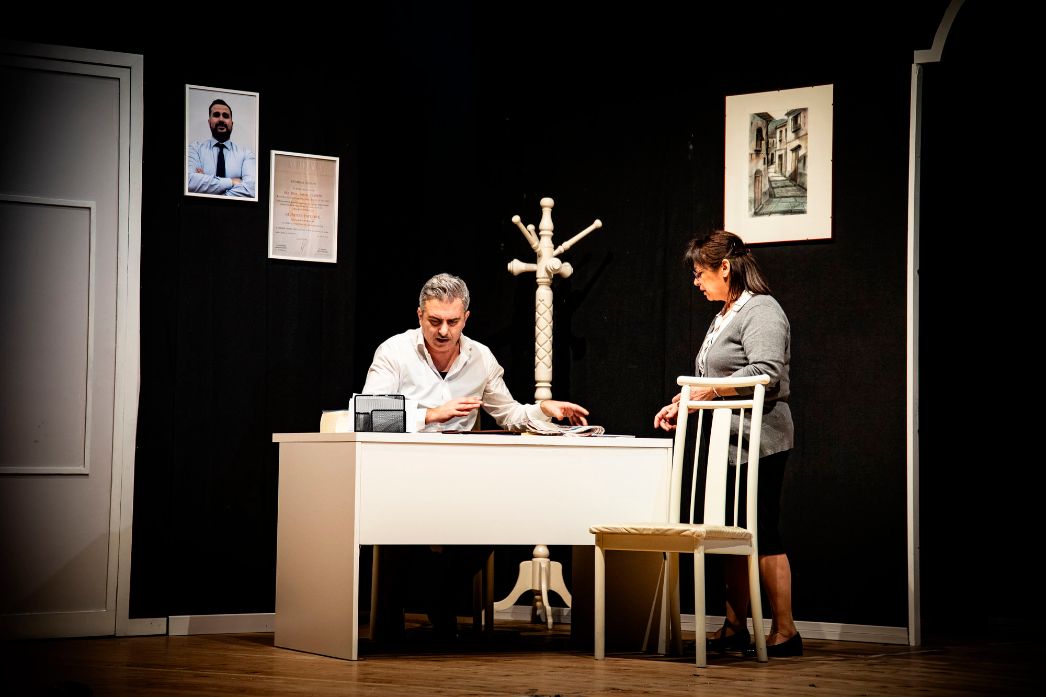 Di certo, in Chi non muore si rivede, accade di tutto, com’è consuetudine in ogni palazzo plurifamiliare e condominiale che si rispetti. Motore trainante dell’affabulazione scenica, è il … quasi avvocato Nicola Ciccone, interpretato dall’eclettico e poliedrico Felice D’ Anna, che si divide tra la professione di tecnico informatico, l’attività promozionale della Pro Loco cittadina, l’organizzazione cooperativistica di Proteatro e l’arte scenica. Il … quasi dello status d’incertezza professionale di Nicola Ciccone risiede nella pergamena di laurea in Legge che fa mostra di sé alla parete dello Studio del personaggio – Nicola, che, però, non ne è il diretto titolare, avendola acquisita in via ereditaria – sostiene convinto e risoluto con quell’ eccentricità sui generis che s’incontra anche in altri personaggi in scena – ma che utilizza per esercitare una professione … senza clienti. Uno squattrinato in pianta stabile, per quanto si sforzi e ingegni di procurarsi clienti e le loro cause, pescando tra le liti e i contrasti che vivono i condomini del palazzo, inseguendo fumose dispute piccolo- borghesi di orgoglioso e banale contegno da far valere. Ma la pesca non incontra alcun successo.