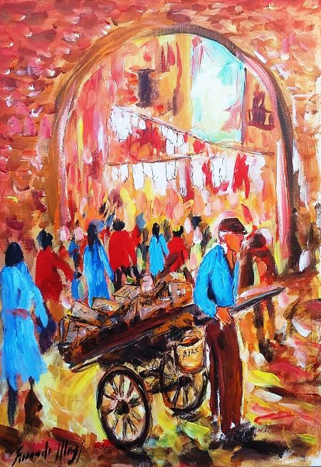 Del Reading in versi merita attenzione, la composizione di Paola Miele, intitolata Il viandante, eccola. E, per focalizzare il senso del linguaggio pittorico di Fernando Masi, eccone un saggio con la tela dedicata al rigattiere dei tempi andati, che girava per strade e vichi, raccogliendo carta e cartoni da ri–ciclare, altro che usa – e- getta. ‘O cartunaro, è il titolo della tela che fa parte della collezione privata dell’imprenditore Pantaleone Dentice, che l’interessato, neanche a dirlo, custodisce con occhio e cura speciali, perché gli fa da specchio e ne racconta le origini di bambino …. che s’industriava di paese in paese della corona di Avellino, nelle ore serali e notturne per la raccolta di carta e cartoni,; e così intraprendeva, magari cascando dal sonno a scuola, il cammino che lo ha reso imprenditore appunto nel riciclio e ri-uso di materiali industriali. L’opera ‘O cartunaro con la varietà dei colori e dei movimenti delle persone narra in alta definizione un tempo lontano che, tuttavia, permane e vive nel fulgore della pittura di Fernando Masi.