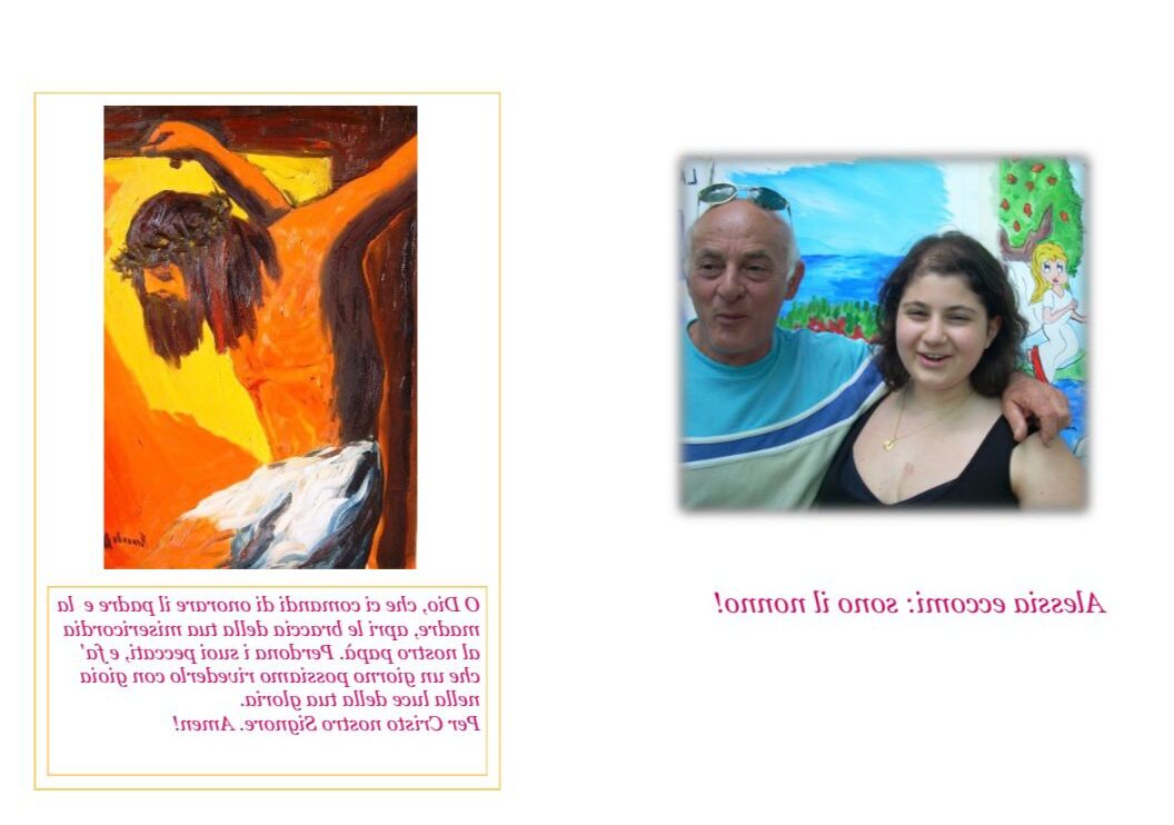 E’ ricordo pervaso di spirito religioso, in cui Tonino \ Fernando, avendo per viatico la Musica e la Poesia, se ne va con la “sua” Pittura ariosa e densa ad incontrare Alessia, la nipote tanto cara. Da nonno solerte e affettuoso.